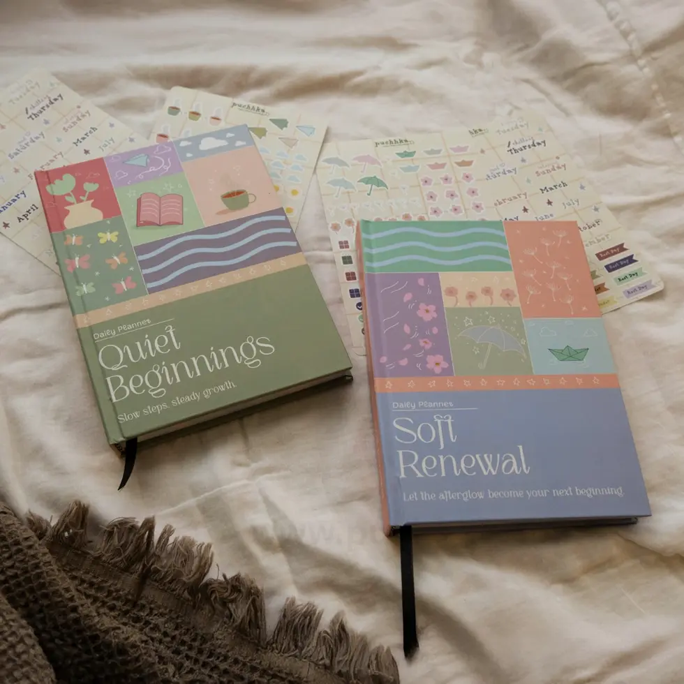 This bundle brings together both 6-month planners — Quiet Beginnings and Soft Renewal from the Karma Collection — creating a full year of mindful planning rooted in tiny steps and steady growth. Inspired by the idea of karma, these planners follow the belief that small actions create quiet ripples. Every choice, habit, thought, and intention you plant eventually shapes the flow of your days. Nothing is wasted — even the softest effort becomes part of a bigger change. Across 12 months, you’ll move through seasons of beginning, growing, flowing, and healing — one mindful day at a time. A perfect set for anyone seeking a slower, more intentional way to plan the year.