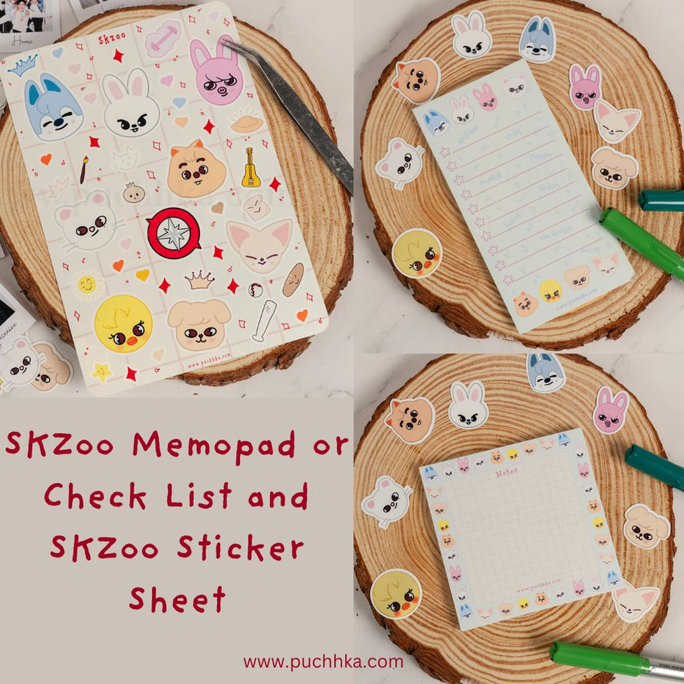 - Skzoo Memopad: 50 tearaway sheets, non sticky, 100gsm paper, non sticky, approx., 3.6x3.6inches, handbound at puchhka.com